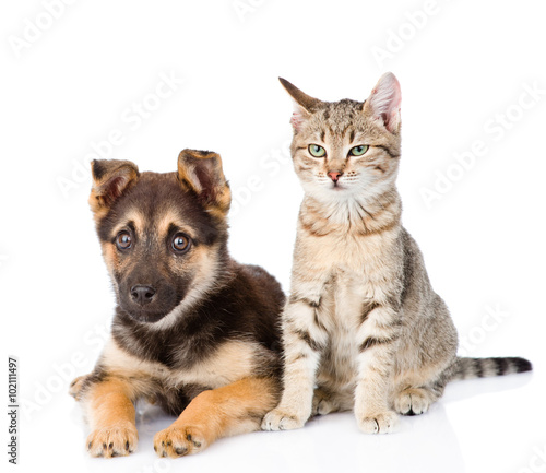 Cat And Dog Sitting Together Isolated On White Background Stock Photo Adobe Stock